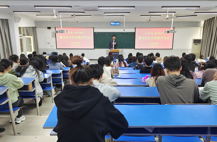 4月13日,财会金融学院开展廉洁文化宣传教育活动,会议由团总支书记沈丽萍主持,全体学生干部和各团支部书记参会。