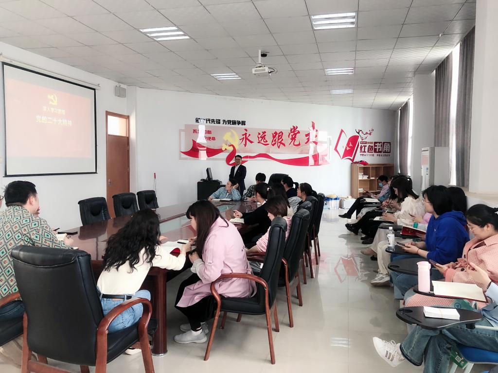 4月12日,学生处党支部纪检委员杨声在学生事务中心二楼会议室为支部党员讲授题为“深入学习贯彻党的二十大精神”的专题党课,支部全体党员参加活动,积极分享学习体会。