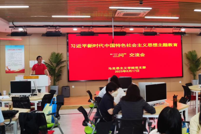 为推深做实学习贯彻习近平新时代中国特色社会主义思想主题教育,5月17日下午,马克思主义学院党支部召开主题教育专题学习暨“三问”交流会,引导思政教师立足本职岗位深入学习思考。会议由支部副书记崔学明主持,全体党员教师参加会议。