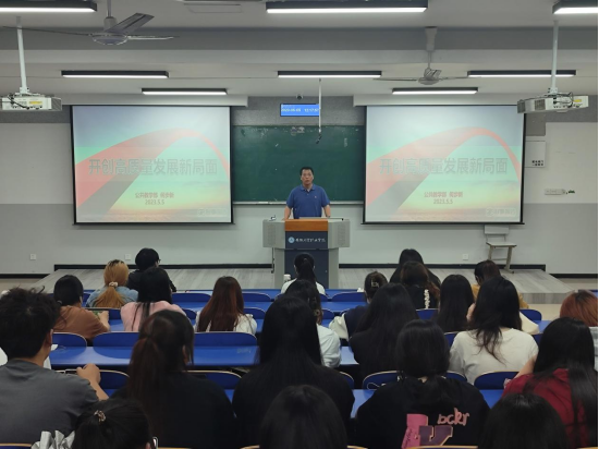 为深入开展学习贯彻习近平新时代中国特色社会主义思想主题教育,5月5日中午,公共教学部党总支副书记何步新作了题为《开创高质量发展新局面》形势与政策专题报告会,公共教学部全体学生网格管理员、部分团学干部代表等参加报告会。