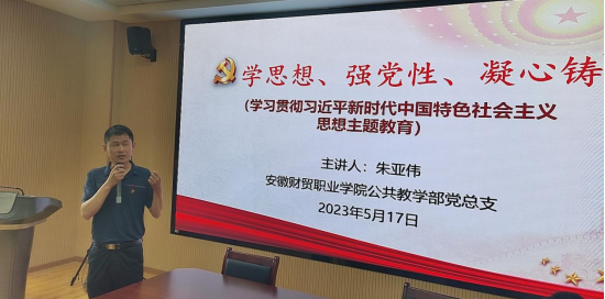5月17日,教师党支部书记朱亚伟以《学思想、强党性、凝心铸魂》为题,从“十个明确”、“十四个坚持”、“十三个方面成就”和“六个必须坚持”四个角度,深入解读习近平新时代中国特色社会主义思想的时代背景、实践基础和理论渊源。