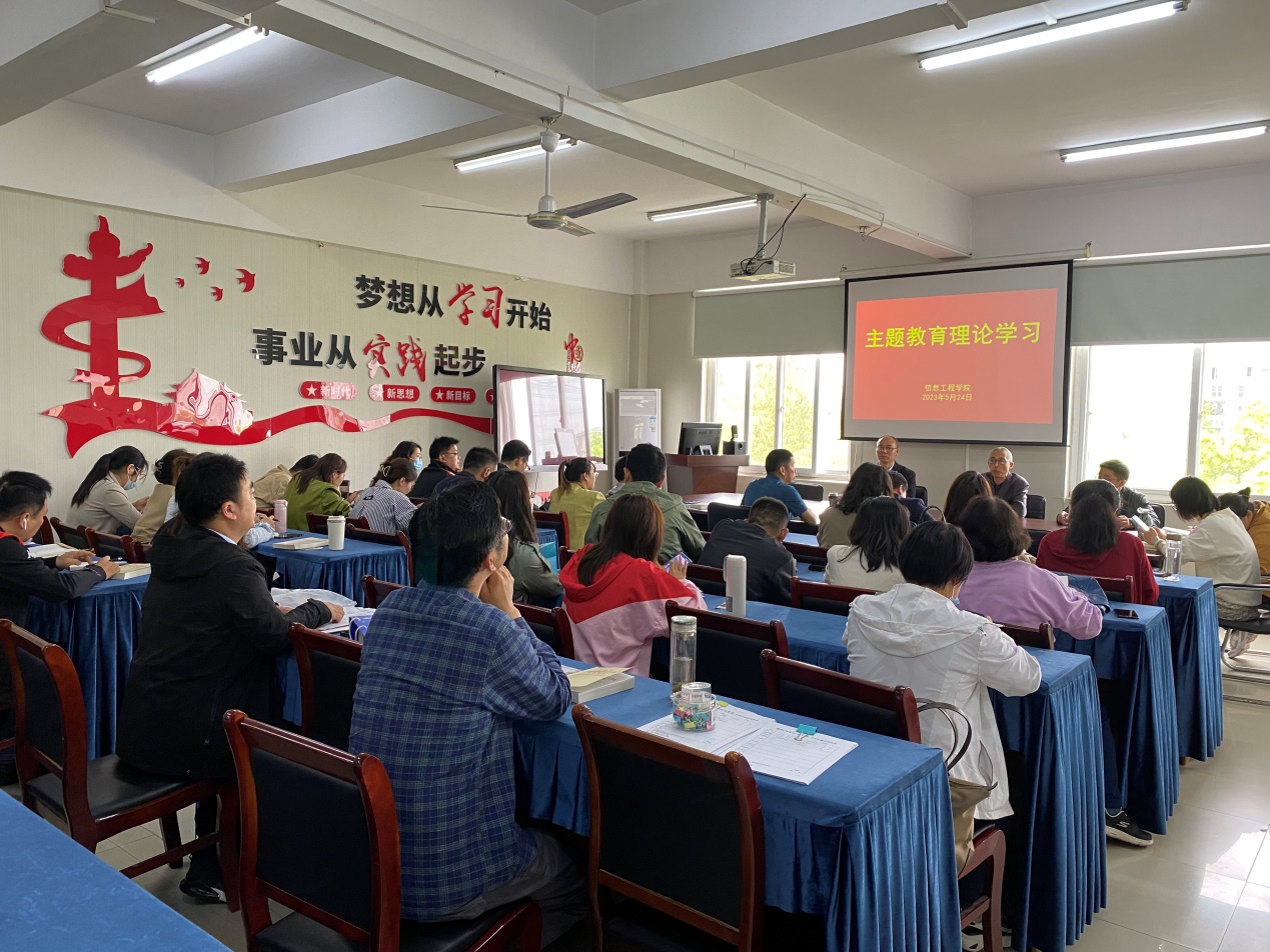 5月24日,信息工程学院党总支开展学习贯彻习近平新时代中国特色社会主义思想主题教育集中学习,会议由学院党总支书记邓庆安主持,全体党员教师参加。