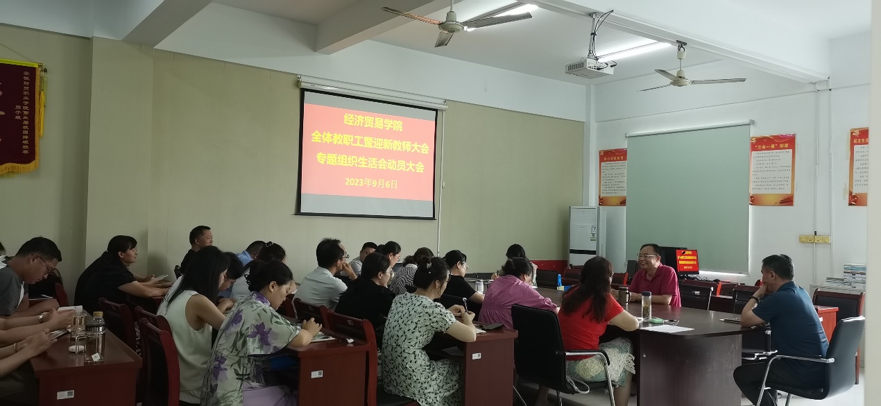 9月6日,经济贸易学院开展新学期全体党员政治学习会,会议由党总支书记陶云龙主持,经济贸易学院党总支副书记丁蓉、副院长江友农及全体党员教师参会。