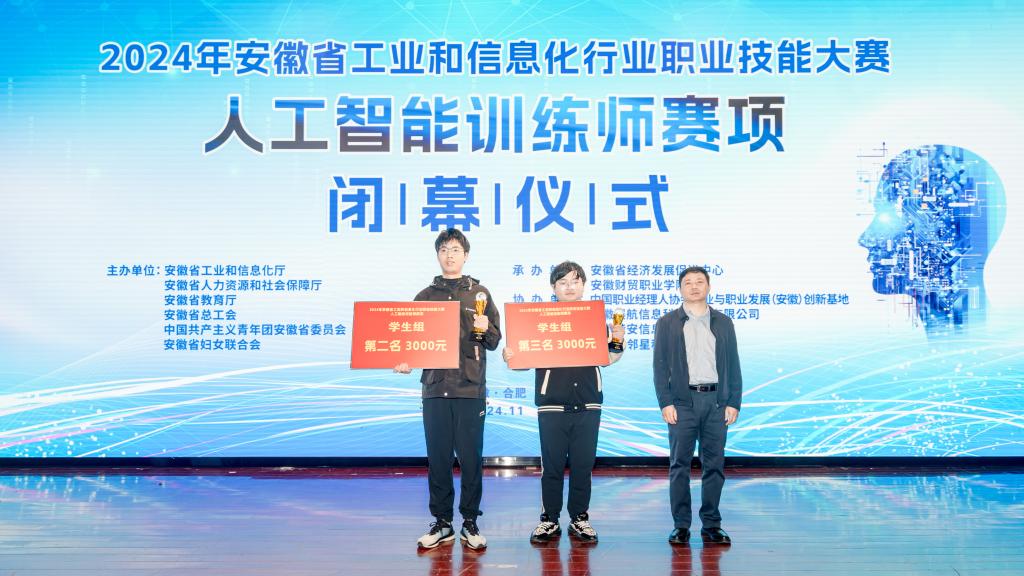 11月8日至10日,2024年安徽省工业和信息化行业职业技能大赛人工智能训练师赛项在我校成功举办。由胡龙茂老师指导的人工智能技术应用专业余建飞同学荣获学生组一等奖。