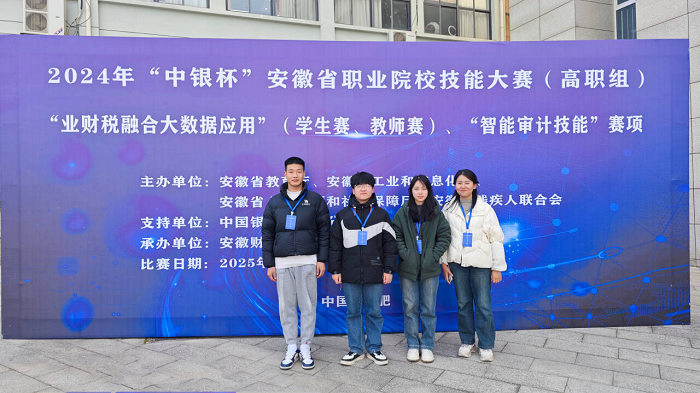 近日,2024年“中银杯”安徽省职业院校技能大赛(高职组)“业财税融合大数据应用”(学生赛)赛项在安徽财贸职业学院成功举办。来自全省35支队伍,140名选手同台竞技。我校孟一凡、孙虎、傅若曦、徐婉缤团队获得第一名,高仁磊、陈孝亮、朱雅琪、李香梅团队获得第二名。