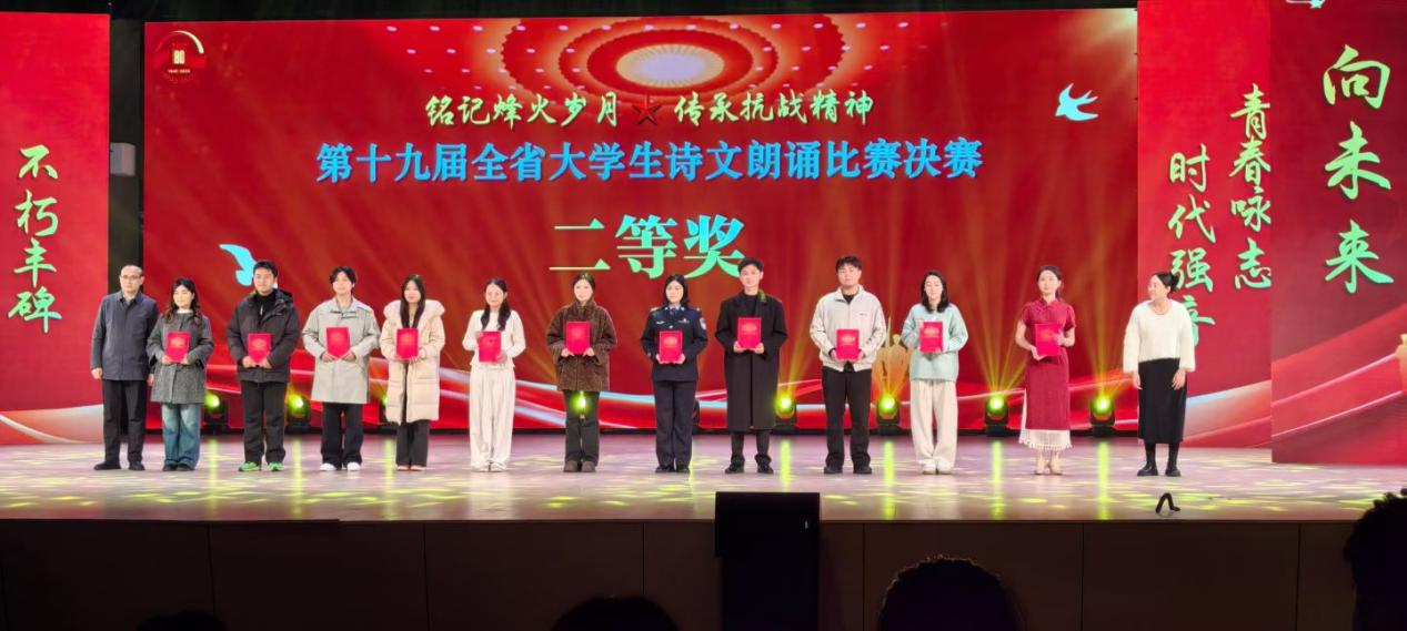 11月28日,由省教育厅主办的第十九届全省大学生诗文朗诵比赛决赛在安徽师范大学圆满落幕。由左艳琼、蔡依倩老师指导的《相机上的红丝绳》,凭借出色表现斩获非专业组二等奖。