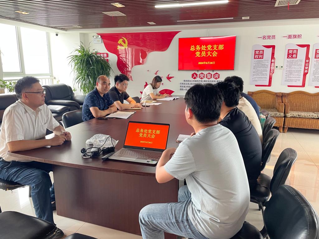 6月26日下午,总务处党支部在行政楼十楼会议室开展主题党日活动。