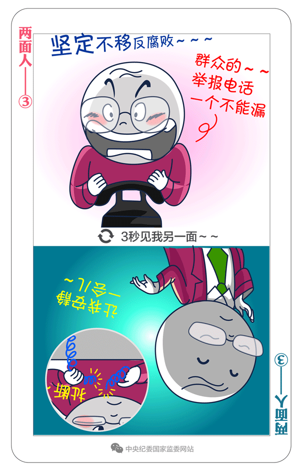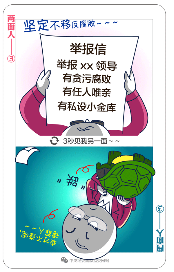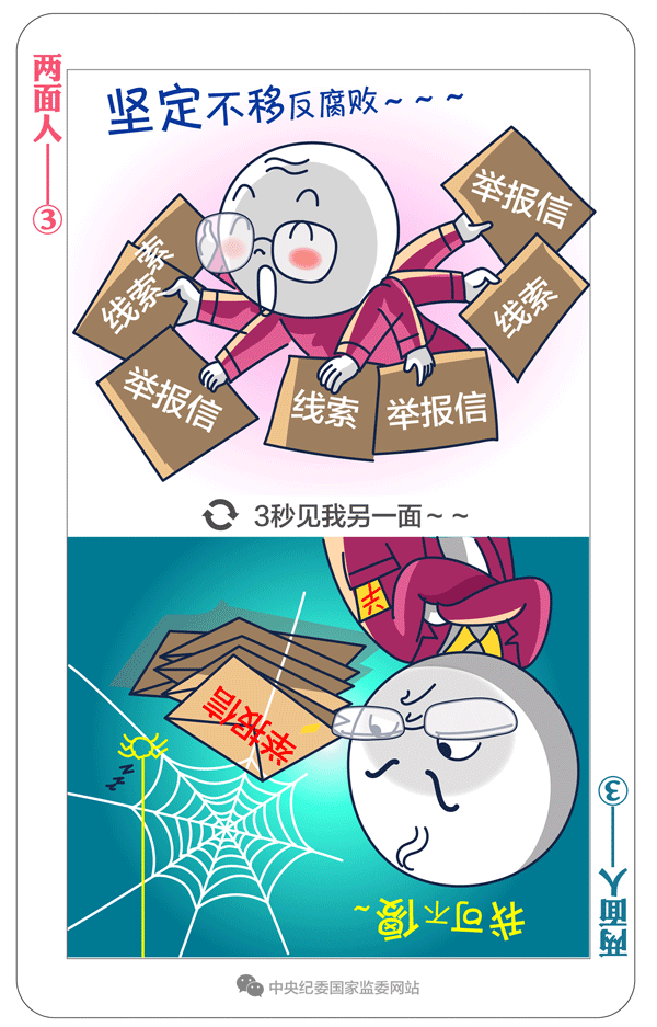 习近平总书记多次强调:“坚决反对搞两面派、做两面人。”大量案件表明,党内有一些人在这方面问题很突出。我们要给政治上蜕变的两面人画个像,摆摆他们的一些表现。今天推出第三期:“有的口头上表态坚定不移反腐败,背地里对涉及领导干部的问题线索不追究、不报告。”