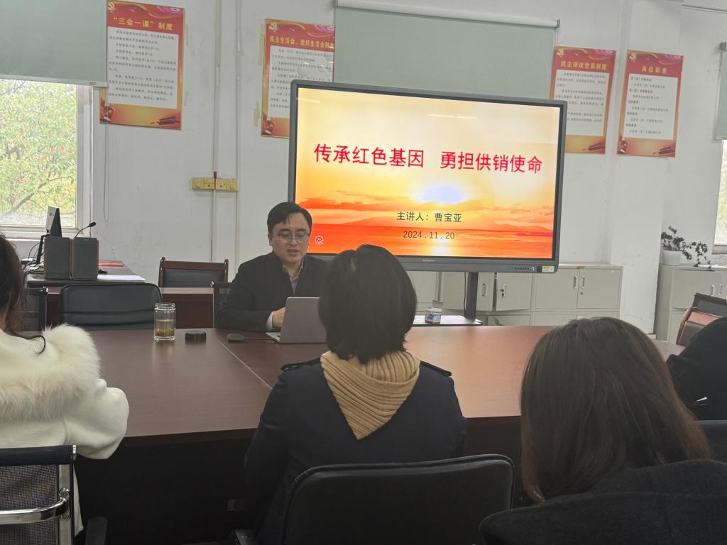 曹宝亚以《传承红色基因 勇担供销使命》为题,阐述了习近平总书记关于供销合作社的重要指示,从供销社的发展历程、经验速递、我省实践、经验启示、专业建设等方面为我院青年教师讲述了供销人、财贸人的使命和担当,以自身的企业挂职实践经历激励青年教师深入企业,走进基层,将理论知识和实践有效融合,鼓励青年教师不断加强党的理论知识学习,增强专业技能,提高教科研项目申报能力。
