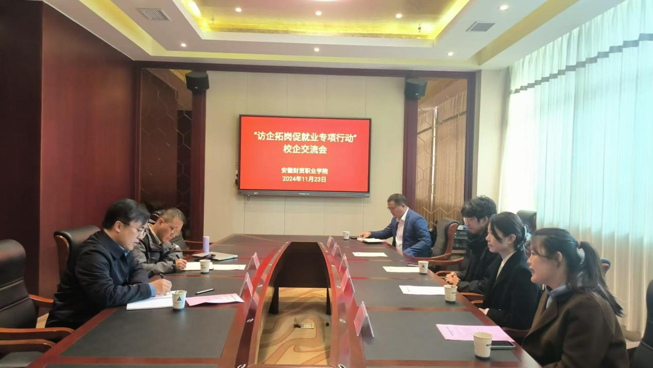 11月23日上午,经济贸易学院举办“访企拓岗促就业专项行动”校企交流会,经济贸易学院副院长曹宝亚、王伟浩和万达广场商业管理有限公司、安徽仟吉食品有限公司、安徽永辉超市有限公司、安徽联升餐厅食品有限公司、上海特朗思大宇宙信息技术服务有限公司合肥分公司参加了会议。