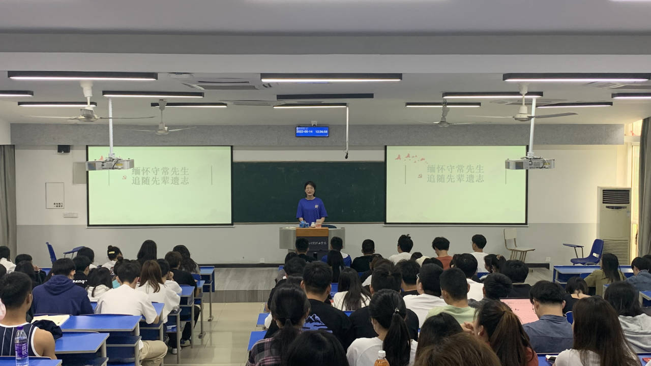 5月14日,经济贸易学院第53期党课班邀请商务经纪与代理2002班预备党员刘峰同学做《缅怀守常先生,追随先辈遗志》主题分享,党课班组织委员沈钰璇担任活动主持人,全体党课班成员参加。