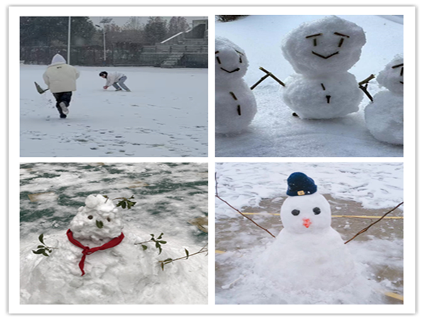 活动围绕堆雪人,从雪人的身体到头部,一点点打磨,一个个可爱的小雪人呈现在大家眼前。每一个小雪人的完工都少不了团体的创意和团队成员的协作配合。同时在轻松愉快的氛围里也增进了班级同学之间的感情,共同体验冬季大学生活的快乐,寻找学习和生活的平衡,展示了当代青年大学生的自我风采,共同打造了校园文明新风尚。