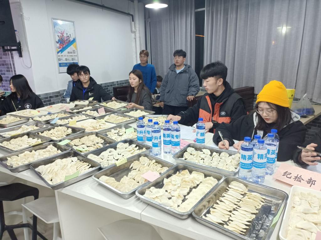 为了丰富校园生活,提高团队协作意识,让同学们体验到“自食其力”的乐趣。由经济贸易学院劳动生活部主办的“包饺子大赛”于12月18日晚在食堂一楼举行,来自全院的约200名同学参加了本次活动。经济贸易学院党总支副书记丁蓉、办公室主任张奇、团总支书记张超、教学秘书方婷婷、陆荷微、学生秘书孙建华、专职辅导员周艳阳、朱艳明、傅燕君等老师担任评委。