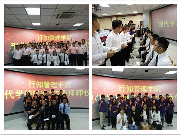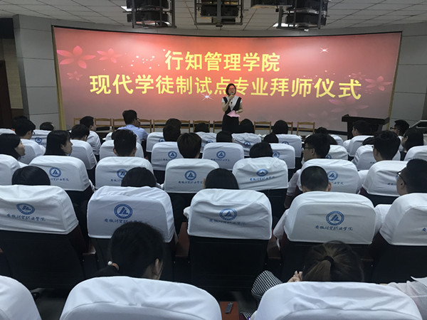 5月23日下午,行知管理学院在3D实训室举办首届现代学徒制试点专业拜师仪式,行知管理学院副院长刘大俊、连锁经营管理、房地产经营与管理等全体专业老师,以及现代学徒制试点班级华润OLE班、麦苗班、链家地产班全体同学参加此次仪式,仪式由行知管理学院朱丽夏老师主持。