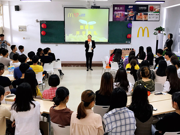 4月11日,学校与安徽联升餐厅食品有限公司(麦当劳中国发展式被特许经营商)合作的现代学徒制项目“麦苗班”正式开班。安徽联升餐厅食品有限公司人力资源经理吴林女士、“麦苗班”班主任张小倩、行知管理学院高皖秋、郭清老师和“麦苗班”40多位同学在4602教室共同见证了“麦苗班”开班典礼。