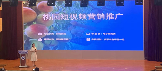 本次大赛充分展示了新时代高等职业教育的新特点:落实课程思政,积极推动党的二十大精神进教材、进课堂、进头脑;创新教学模式,拓展教学新路径与新资源;紧跟时代热点,促进信息技术的创新应用。我校参赛教师张勤在闭幕式中示范展示了参赛作品《桃园短视频营销推广》的教学实施报告。