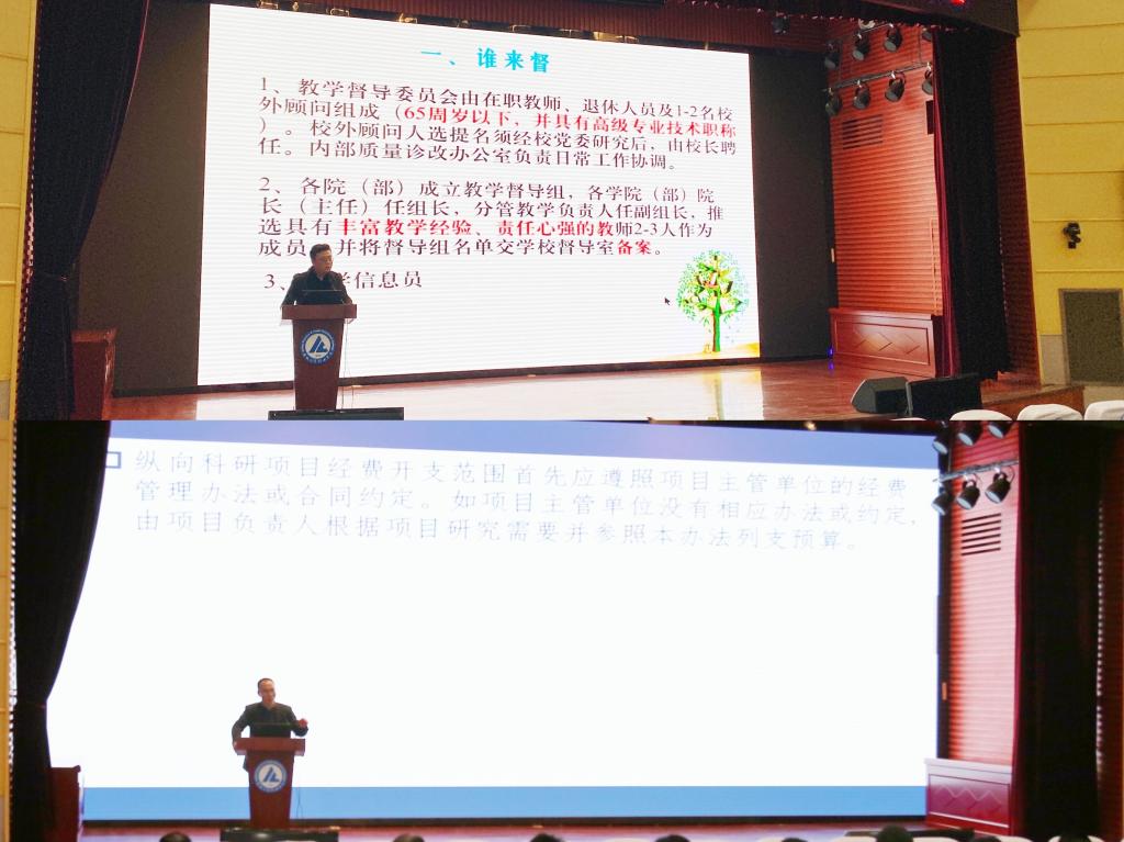 会上,教务处负责同志分别对近期发布的系列规章制度进行深度解读,内容涵盖教学考核、工作量核算、教学管理、大赛管理、教学督导管理、本科管理、科研管理等内容,同时也为教师们梳理了教学、大赛、教学督导、科研过程中常见问题及解决对策。