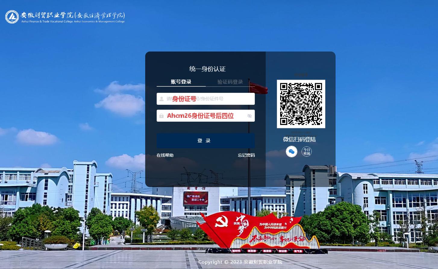 【登录方式】登录账号:身份证,密码:Ahcm+26+身份证号后四位。