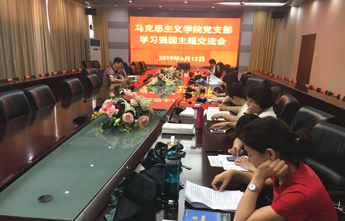 2019年6月12日下午,马克思主义学院党支部举办“学习强国”主题交流会,交流半年来支部党员在“学习强国”平台上的感悟收获和成长。支部书记王良斌主持交流会。