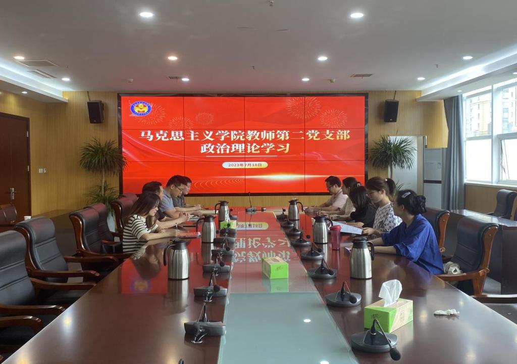 7月18日上午,马克思主义学院教师第二党支部在行政楼204开展政治理论学习,会议由教研室主任张瑞琪主持,教师第二党支部成员参加。