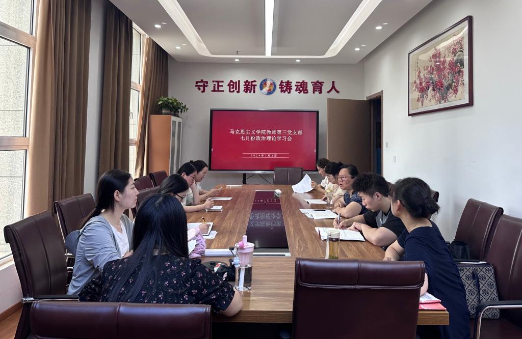 7月3日下午,马克思主义学院教师第三党支部召开七月份政治理论学习会议,全体党员参会。