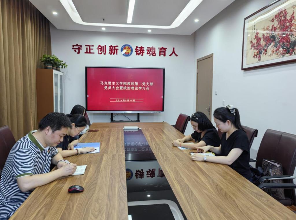 8月26日,举行党支部委员会线上会议,会议集中学习了党的二十届三中全会精神,并就新学期如何将党的二十届三中全会精神融入思政课教学,进行充分交流。会议还讨论了八月份党员政治理论学习内容和主题党日安排,确定了新学期集体备课、题库制作、授课计划及实训手册。