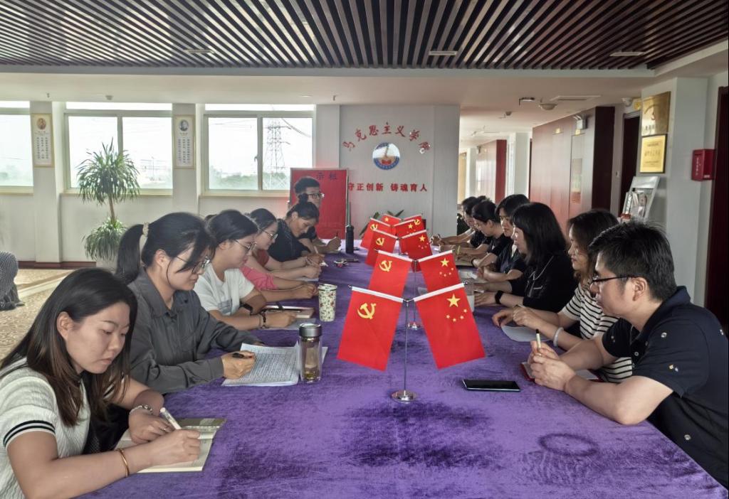 6月11日下午,马克思主义学院教师第一党支部在行政楼5楼会议室召开党员大会,深入贯彻中央八项规定精神学习教育。支部全体党员参加会议。