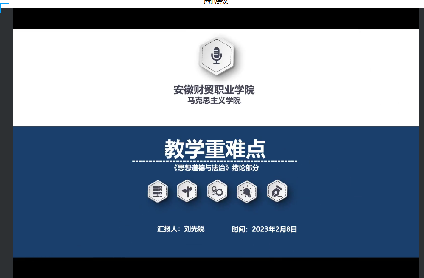 会上,青年教师余习勤、刘先锐作为主讲人,针对课程中“担当复兴大任成就时代新人”专题分别就授课重点、授课内容、授课过程等内容进行了说课。余习勤老师以“大学是什么?”为切入,引出大学阶段是人生自我蜕变和提升的关键时期,讲解了“新时代的内涵和意义”“时代新人的任务”等相关内容。刘先锐老师则从新时代、时代新人、思想道德素质、法治素养四个方面进一步明确了该专题的教学重难点,深入分析了为什么要学习思想道德与法治课程、如何理解思想道德素质与法治素质内涵。