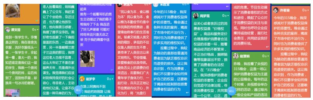 ——挖掘节日的法治教育内涵,增强学生学法懂法用法能力。3月15日是消费者权益保护日,教师在学习通中设置任务,学生上传“一个亲历的消费权益事件及处理结果”。学生课后观看“‘3·15’晚会”,在学习通中分享观后收获。以主题任务的形式,促进大家关心身边事,并树立正确健康的消费观念,提高同学们懂法用法的实际能力。