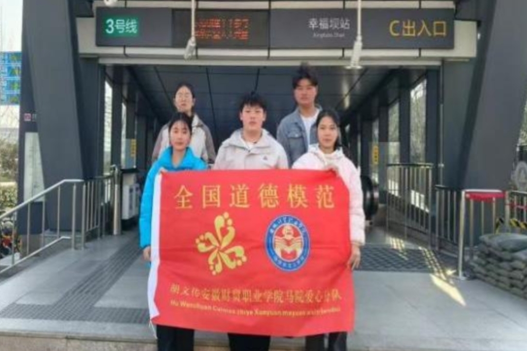 胡文传安徽财贸职业学院马院爱心分队志愿者选择在合肥地铁三号线幸福坝地铁口参加人员疏导帮扶志愿活动,志愿者们热情的引导、耐心的劝导、爱心的向导给广大市民乘客留下了美好的印象,也彰显了安财院学子积极服务社会的青春力量。