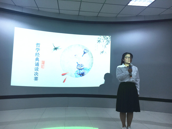 本次比赛中,参赛同学可以自选中华优秀古文选段进行诵读,考察参赛同学的朗诵水平,另外参赛同学还被要求要对自选的诵读选段进行见解阐释,品位蕴含在古文中的哲学知识,以古鉴今,触类旁通。