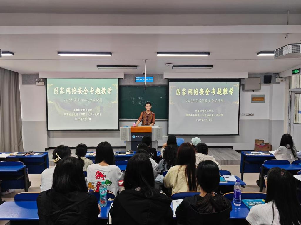 宣传周期间,全校国家安全教育课程全面融入网络安全教育专题内容。教师通过案例剖析和理论讲述等形式,引导学生分析“AI换脸诈骗”“虚假兼职刷单”等新型网络犯罪手段,组织学生围绕“网络谣言危害”“社交平台隐私保护技巧”等话题展开讨论。课堂注重引导学生从“被动接受”转向“主动思考”,帮助学生树立“网络安全无小事”理念。