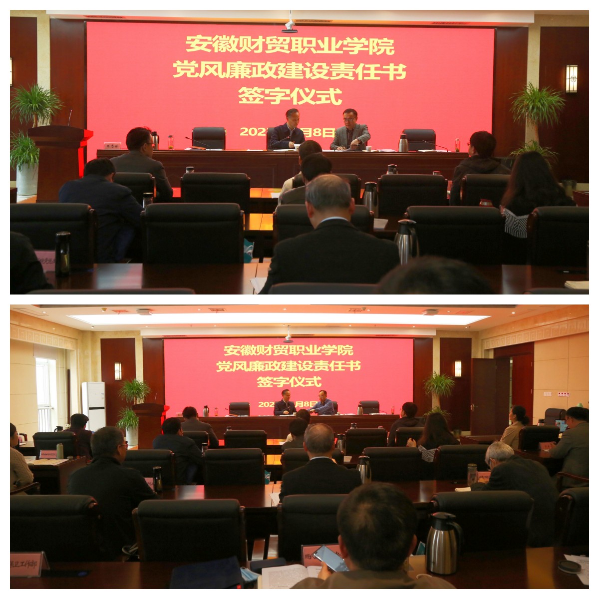 会议举行了2023年度党风廉政建设责任书签订仪式,明确党风廉政建设责任范围,为提升学校治理体系和治理能力建设,持之以恒正风肃纪,巩固发展反腐败斗争成果,一体推进不敢腐、不能腐、不想腐,修复净化政治生态,持续健康稳定发展提供坚强保证。