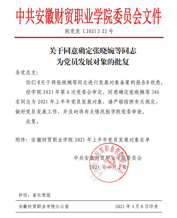 关于同意确定张晓婉等同志为党员发展对象的批复