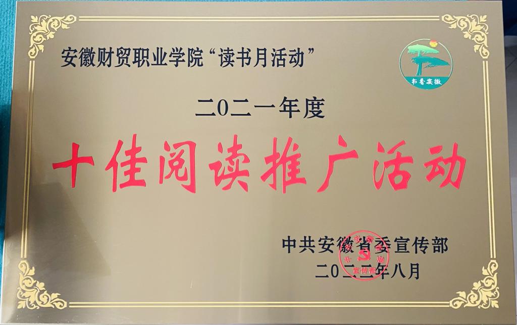 为发挥典型引领示范作用,省委宣传部组织开展了2021年“书香安徽”全民阅读系列推荐活动。在各地、各有关部门推荐基础上,经专家评审、网络公示,安徽财贸职业学院凭借“读书月活动”丰富多彩的阅读推广活动和积极热烈的校园阅读氛围,从全省近千家机关、企事业单位和高校中脱颖而出,成为入选的十家单位之一。