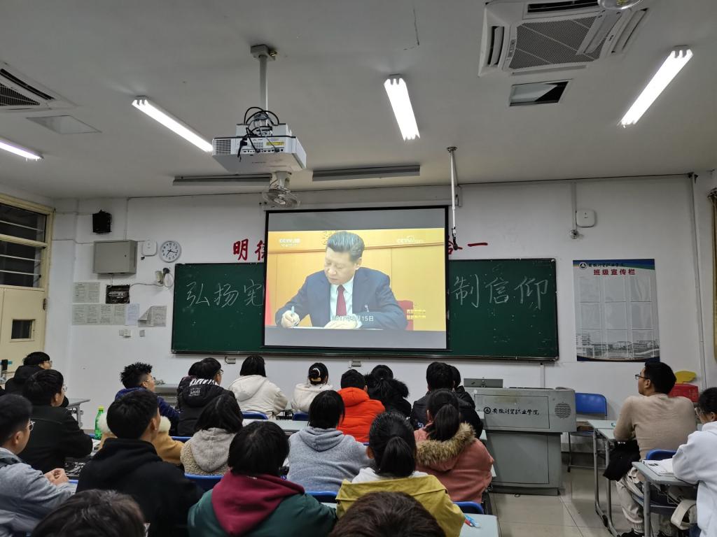 12月2日晚2020级全体新生及本科部各班集体观看《宪法的精神,法治的力量-CCTV年度法治人物颁奖礼》。该节目是中央电视台法治宣传的第一品牌,同时也是国家宪法日宣传的重要平台。本次颁奖礼共分为六个篇章——“法治的进程”“法治的精神”“法治的思维”“法治的力量”“法治的中国”“法治的英雄”。通过短片和现场讲述,凸显党的十九大胜利召开后政法工作的新思路、新进展,普法工作的新举措、新气象。在他们身上,有着对法治精神的传承,对公平正义的坚守,对全面推进依法治国伟大理念的执着追求。