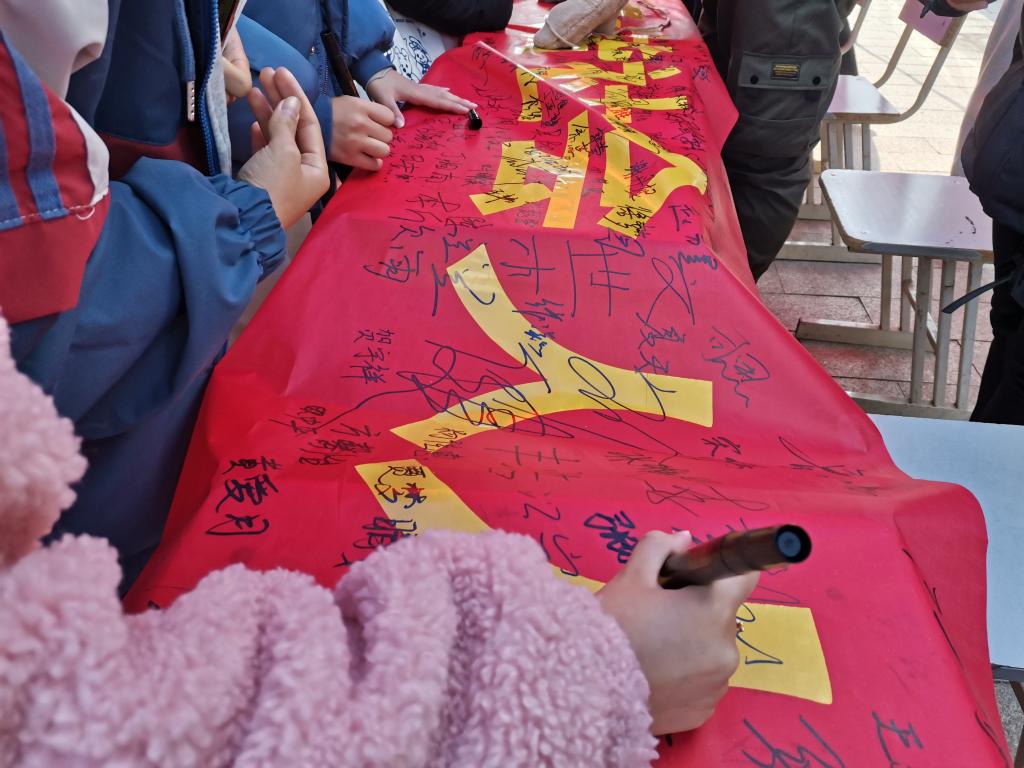 12月4日中午,团委开展“深入学习宣传习近平法治思想,大力弘扬宪法精神”现场签名活动,吸引过往师生驻足签名。通过签名活动的开展,他们签下的不仅是自己的名字,也是对宪法的一个承诺。承诺会遵守宪法并且坚定的拥护我国宪法,做一个与法同行的大学生。