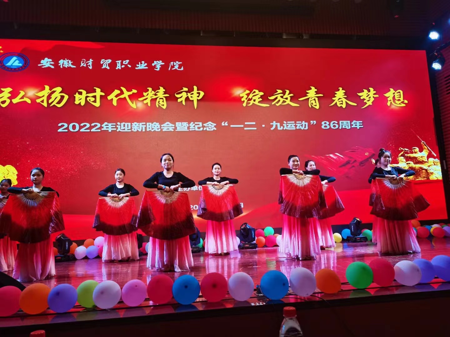 12月9日晚,校团委在学校学术报告厅举办“弘扬时代精神·绽放青春梦想”2022年迎新晚会暨纪念“一二·九运动”86周年。学生处处长刘葆、财会金融学院党总支书记胡宏萱、公共教学部党总支副书记何步新、学生处副处长濮光宁、校团委副书记左艳琼以及各院部团总支书记、专职辅导员和同学们齐聚一堂,共享艺术盛宴。