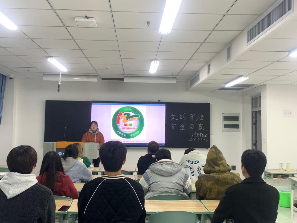 主题团日活动中,各班级团支部结合今年122全国交通安全日的主题,引导同学们在日常学习与生活中,严于律己,明礼修身,诚实守信,勤俭奋斗,遵守交通法律法规,珍爱生命,做一个安全出行的践行者和文明的新时代大学生。