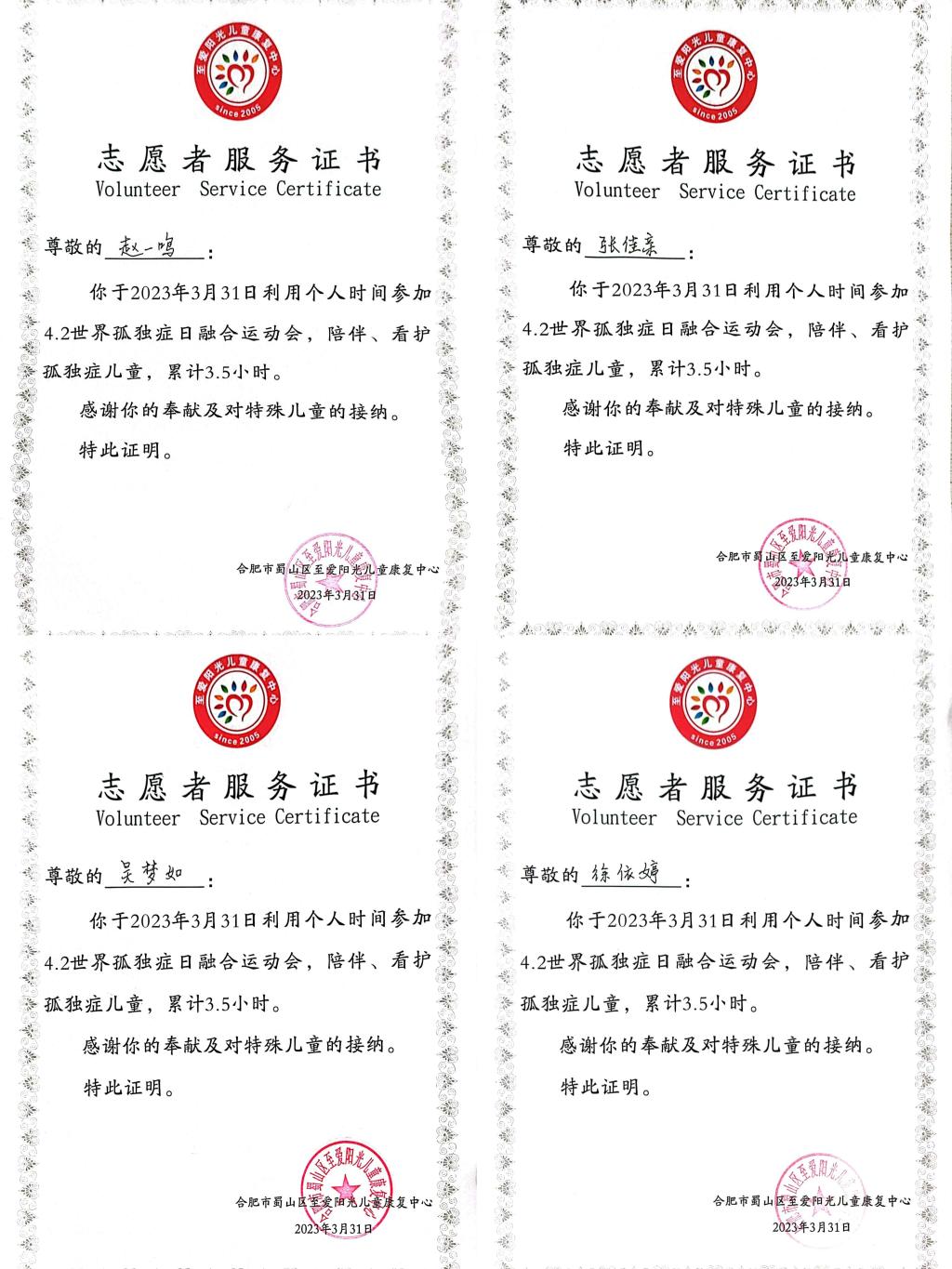 3月31日下午,在合肥市蜀山区残疾人联合会指导下,合肥至爱阳光儿童康复中心与合肥安生学校联合举办“关爱孤独症儿童”融合运动会,校团委携财会金融学院学生参加活动,为孤独症患者群体奉献爱的力量。