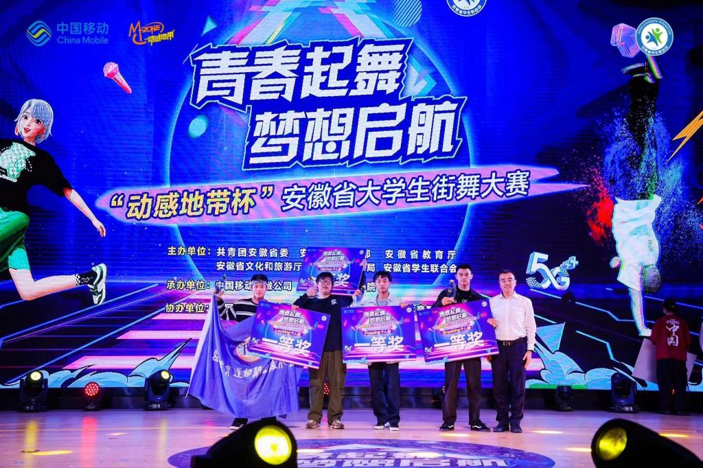 10月13日,由共青团安徽省委、安徽省委宣传部、安徽省教育厅、安徽省文化和旅游厅、安徽省体育局、安徽省学生联合会主办的“青春起舞,梦想起航”动感地带杯安徽省大学生街舞大赛总决赛落下帷幕,我校审计2303吴金聪同学在1vs1 popping斗舞项目中荣获一等奖,运动2201王旭同学获得1vs1hiphop斗舞项目第三名。