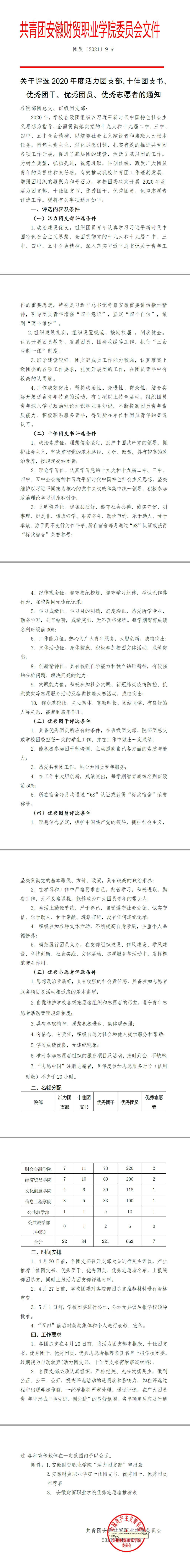 团发〔2021〕9号 关于评选2020年度活力团支部、十佳团支书、优秀团干、优秀团员、优秀志愿者的通知
