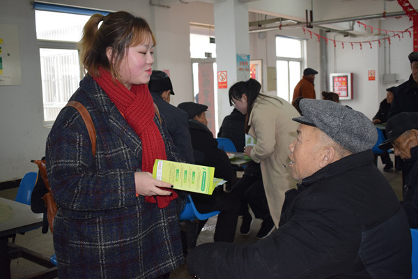 像往常一样,同学们到了养老中心后,将精心选择的食品、慰问品送到了老人们手中,主动帮助老人们打扫卫生、整理房间,春寒料峭挡不住屋内浓浓的温暖,青春的面庞辉映着老人们慈祥的微笑。志愿者江淑宁说“能感觉到这里的爷爷奶奶还是挺孤独的,我们多来来,陪陪他们说话,至少能让他们开心地笑一笑。”与志愿者同行的还有学校医务室的校医,他们和志愿者一起为老人们进行了义诊,向老人们宣传了春季安全饮食知识和日常疾病的防护。当天的午餐,养老中心安排了饺子,部分志愿者和老人们一起包饺子、聊家常,餐厅里也是一片欢乐祥和的景象。