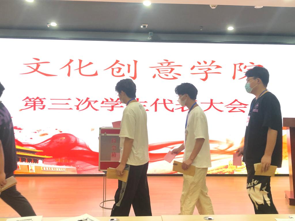 在大会公布了候选人产生情况说明、选举办法、监票人计票人名单等事项后,选举正式开始。各位学生代表认真阅读候选人简介,履行自己的职责,公平公正的进行选举投票,通过差额选举产生了文化创意学院第三届学生会成员。大会在振奋的团歌声中胜利闭幕。