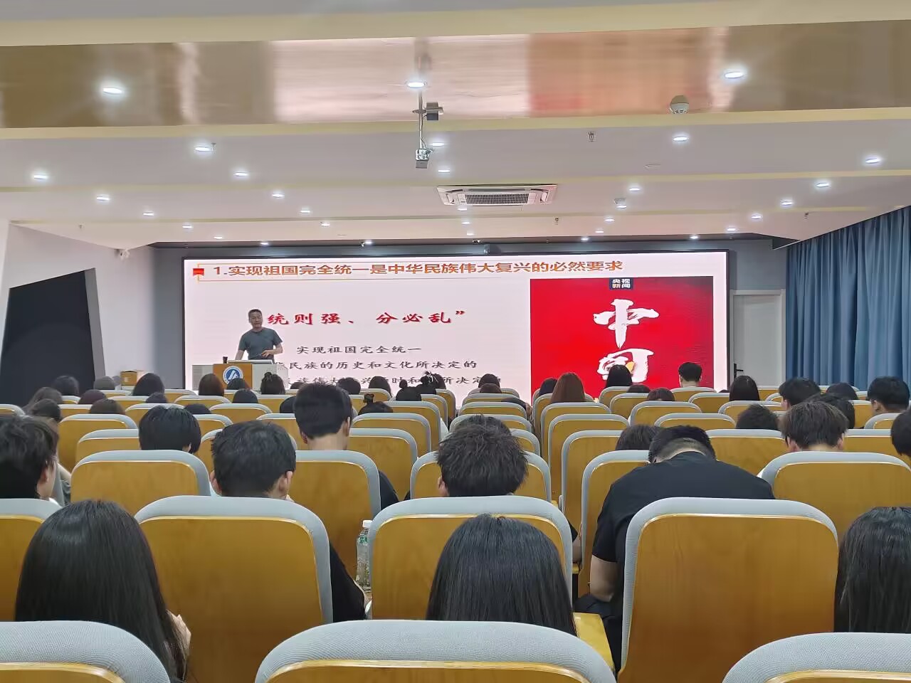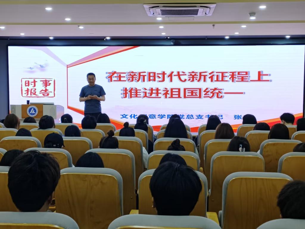 为深入学习宣传贯彻党的二十大精神,提升大学生的党性修养,4月20日晚文化创意学院党总支书记张克开展“在新时代新征程上推进祖国统一”《形式与政策》专题报告,入党积极分子及学生干部150余名学生参加学习。