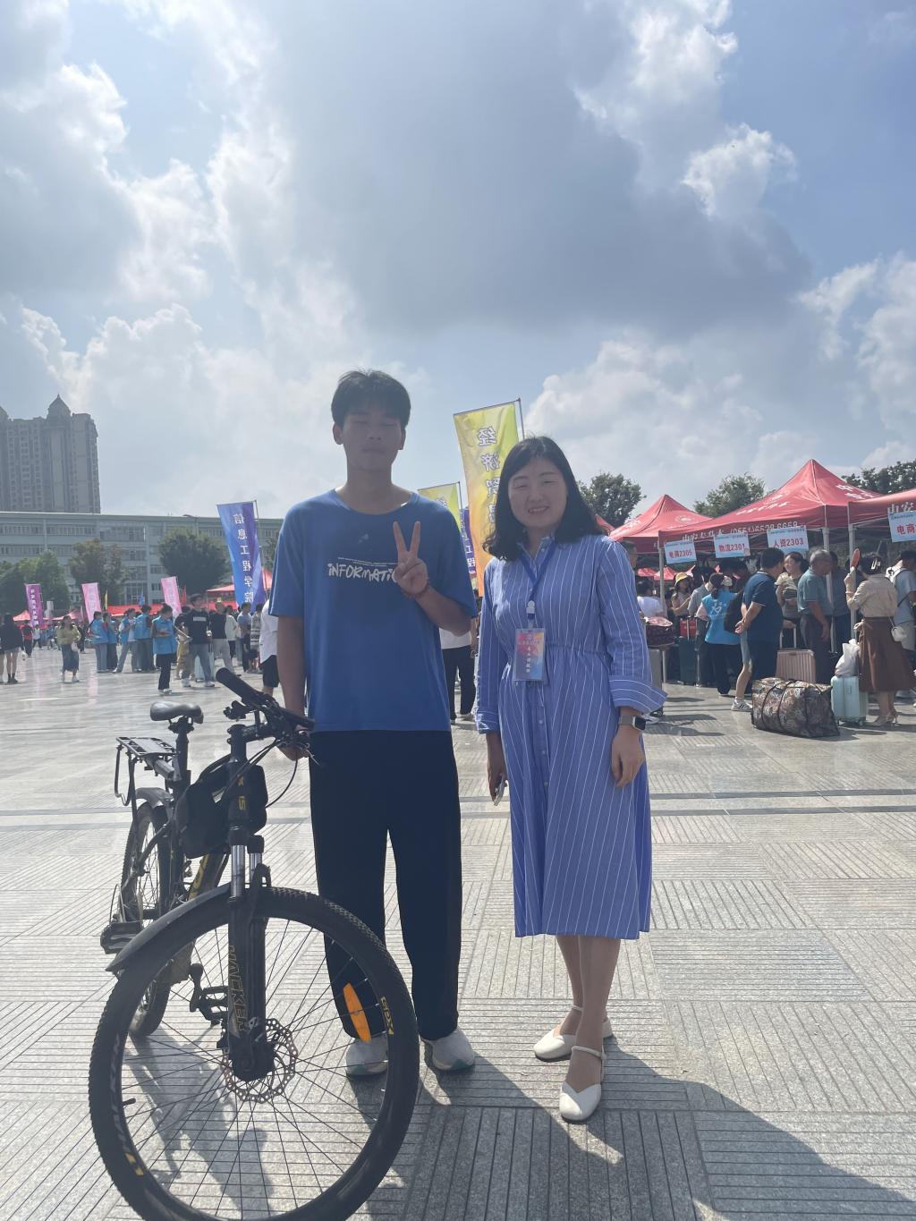 9月16日,“男生骑行2160公里抵达安财院报到”的话题引起了师生及家长们的广泛关注,毕业于亳州市利辛高级中学的江飞同学,今年被安徽财贸职业学院文化创意学院旅游管理专业录取。6月17日他靠自己暑假打工攒钱买了一辆自行车,从家乡亳州出发,穿越了河南、四川、西藏、江苏、安徽5省骑行2160公里抵达安徽财贸职业学院报到,完成了一场圆梦之旅。