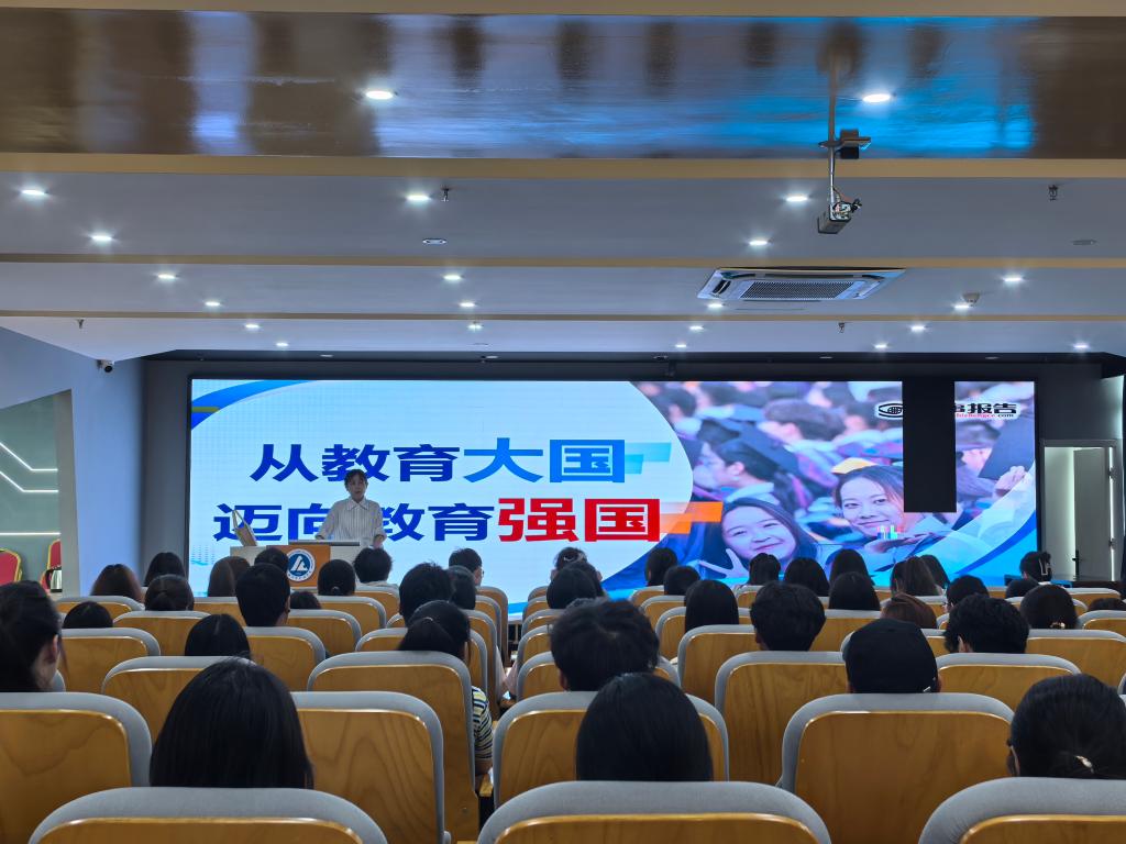6月11日下午,文化创意学院党总支副书记倪晶晶走进思政课堂,为青年学子讲授题为《从教育大国迈向教育强国》的形势与政策专题报告。入党积极分子、23级团学干部、新发展团员等100余人参加报告会。