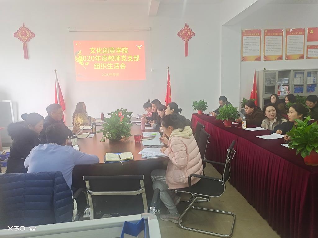 根据《中共安徽财贸职业学院委员会关于召开2020年度基层党组织组织生活会和开展民主评议党员工作的通知》及党总支的安排,文化创意学院教师支部委员会于2021年3月3日下午在210室召开了2020年度组织生活会,并开展了民主评议党员活动。会议由支部书记沈东生主持,文化创意学院院长郭湘如、副院长高静参加会议。
