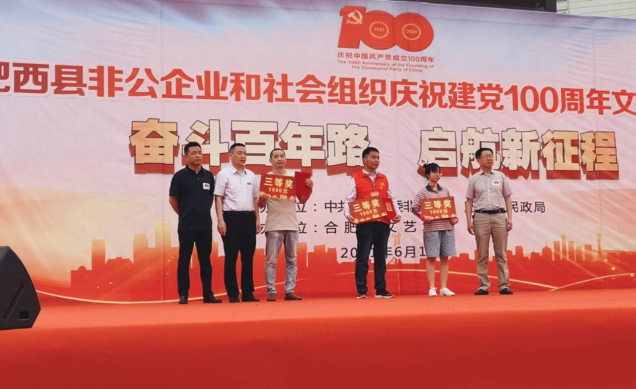 2021年6月,肥西县委非公工委和县民政局在上派镇古埂公园举办“肥西县非公企业和社会组织庆祝建党100周年文艺汇演”。基于文化创意学院与肥西县柿树岗乡党建共建及校地合作的长期伙伴关系,积极参与柿树岗乡乡村振兴建设,文化创意学院选送《啦啦操》歌伴舞节目助力柿树岗乡乡村振兴产业发展协会参加本次文艺汇演并获得三等奖。