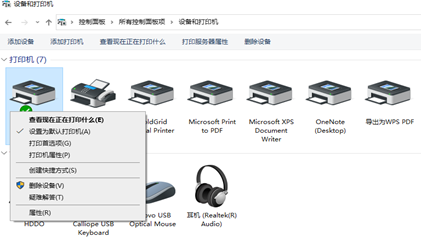 2、鼠标右键打印机,打开打印机【属性】,如图2所示。